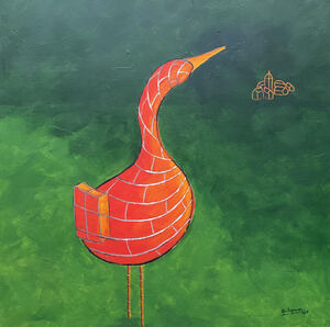 2016Een vogel net ingeburgerd in het stadse gebeuren. terug denkend aan zijn dorp . Beschikbaar