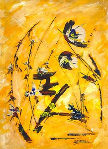 2023Verf met het paletmes opgebracht. Geleverd met wit passepartout in strakke zwarte lijst, afmeting geheel: 90cm. x 65cm. Beschikbaar