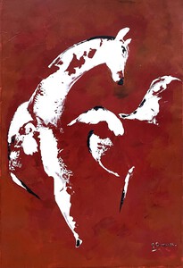 2023Verf met het paletmes opgebracht . Geleverd met wit passepartout in strakke witte lijst, afmeting geheel: 75cm. x 60cm. Beschikbaar