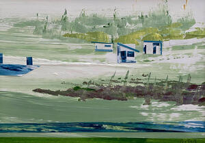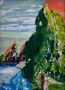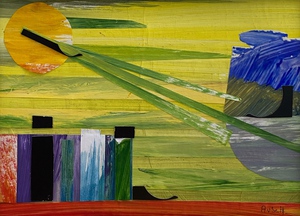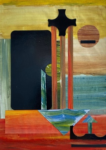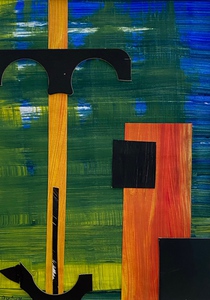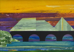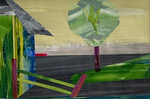 2023Collage landschappelijk. Geleverd in strakke witte lijst in wit passepartout, afmeting geheel: 23,5cm. h x 32,5cm. b acryl op papier. Niet beschikbaar .