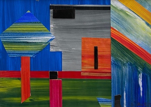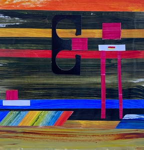 2023Abstractie. Geleverd in strakke witte lijst in wit passepartout, afmeting geheel: 23,5cm. h x 32,5cm. b acryl op papier. Niet beschikbaar